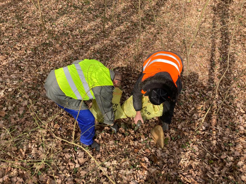 Gefährlich wurde es kurzzeitig, als zwei Stabbrandbomben aus dem zweiten Weltkrieg neben der Straße gefunden wurden. Sofort wurde der Fund der Polizei gemeldet, die dann den Entminungsdienst für die fachgerechte Entsorgung verständigte.